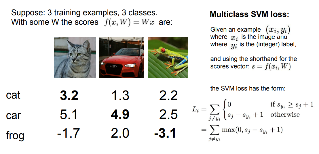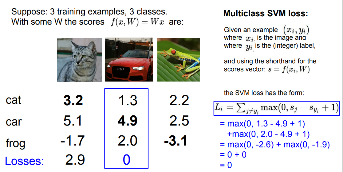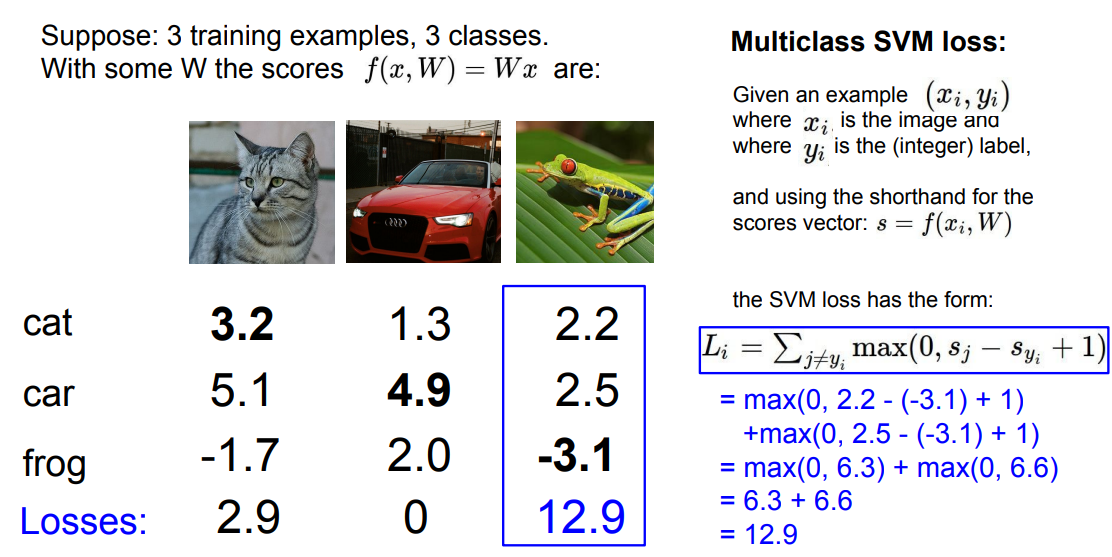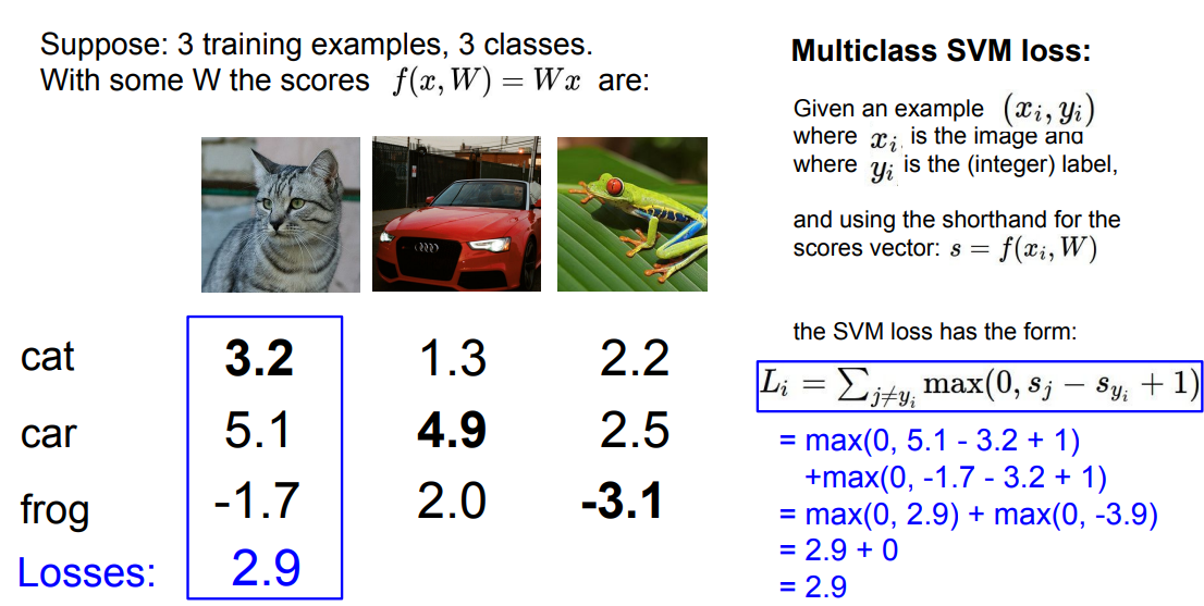 따라서 앞서 살펴본 multiclass svm loss와는 차이가 있다.
