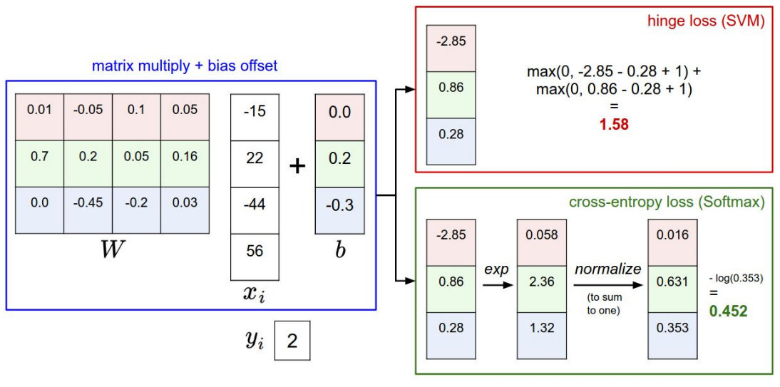 Multiclass SVM loss와 Softmax classifier를 한개씩 살펴보자